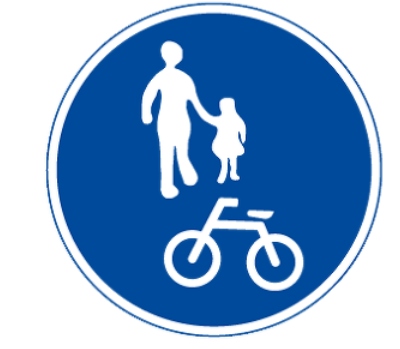 겸용 도로 : 이 표지판이 있는 도로에서는 자전거도로와 보행자도로의 구분 없이 통행할 수 있다는 뜻